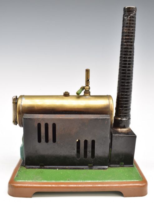 stationary live steam engine with fixed cylinder, whistle and sight glass