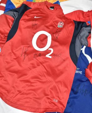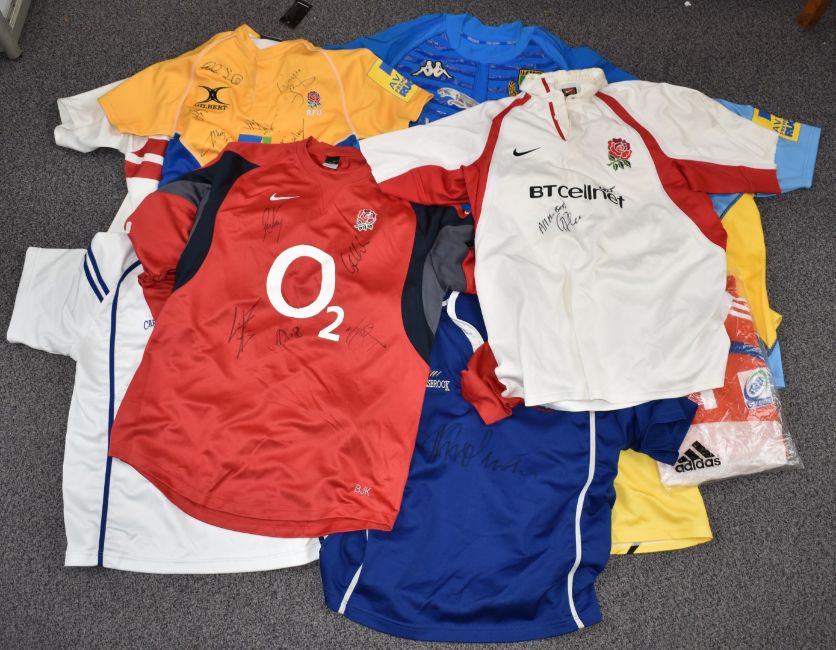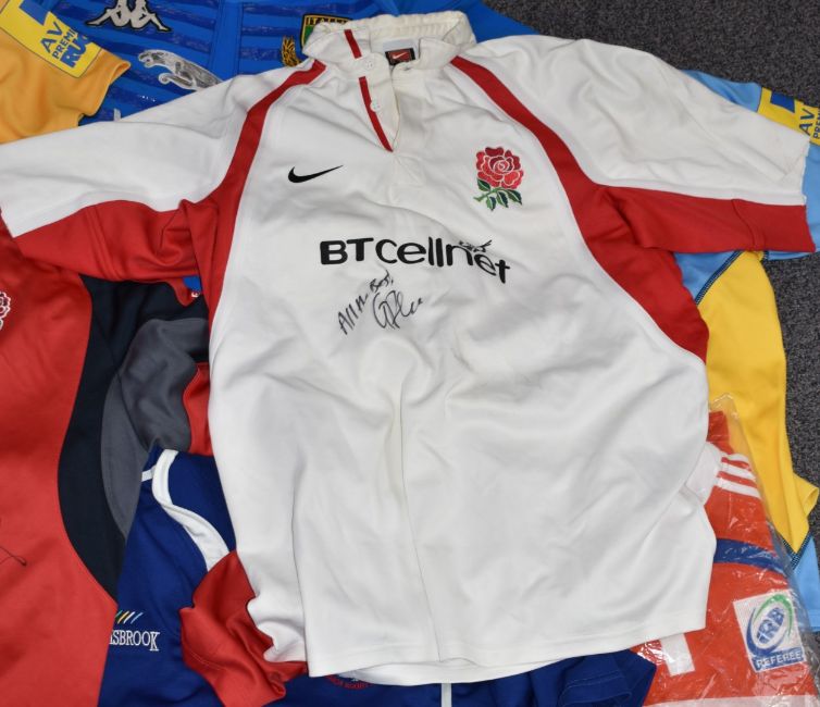 Twelve rugby shirts including signed Samoa and England, referees shirts including signed Wayne Barnes x3 and signed Italy shirt