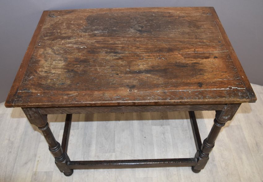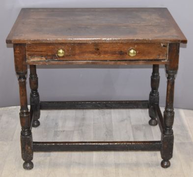 Antique oak hall table with single drawer, W88 x D61 x H78cm