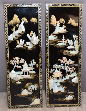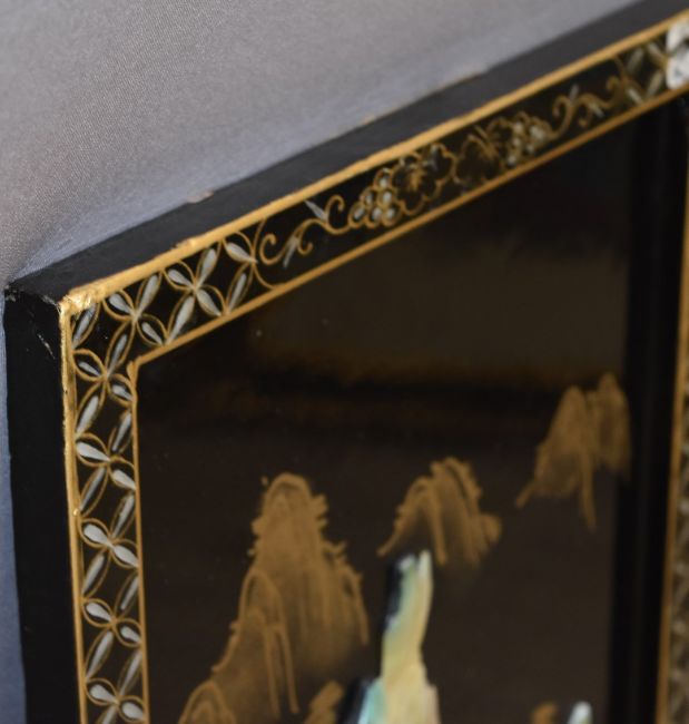 Shibayama decorated Chinese cabinet W68 x D 30 x H100cm together with two panels