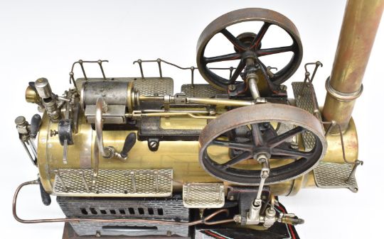 Doll model 520 overtype live steam engine with single cylinder, with twin fly wheels, lever safety valve, sight glass and boiler feed pumps
