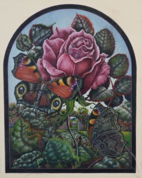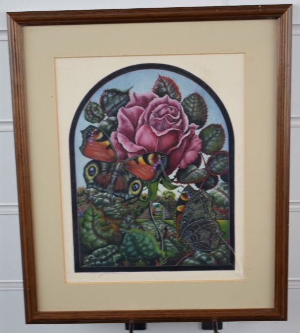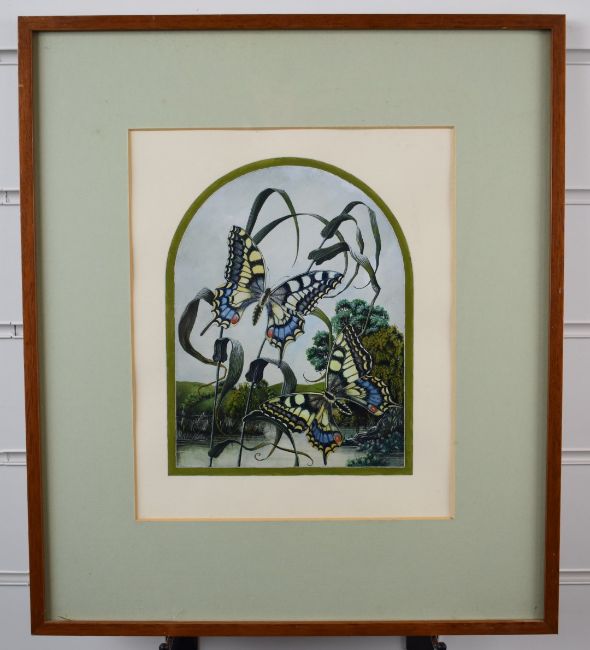 Una Woodruff (b 1951) three watercolour studies of butterflies and flowers, each 23 x 18cm
