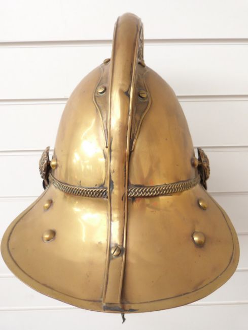 19thC brass fireman's helmet with dragon to top