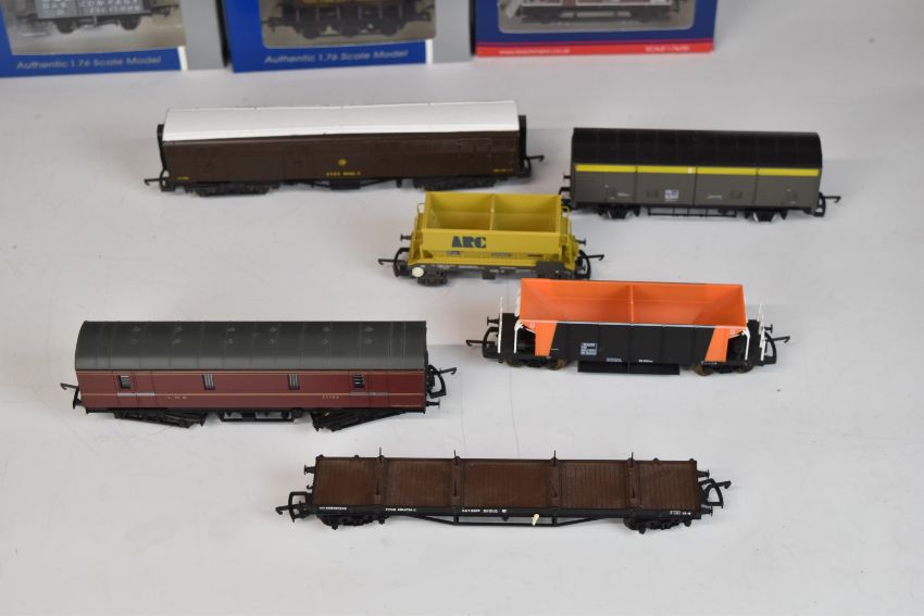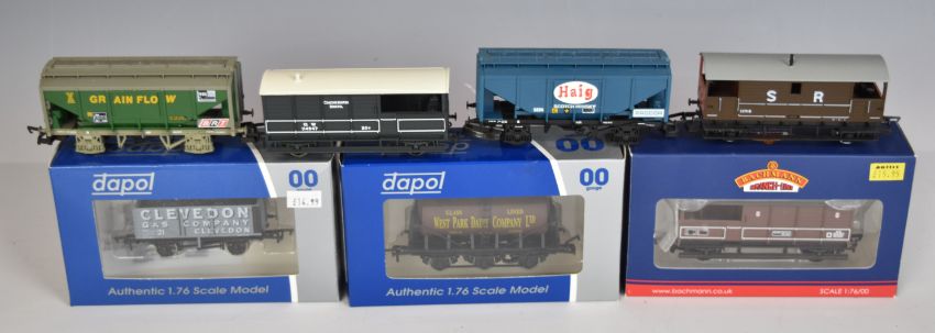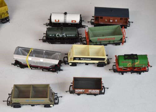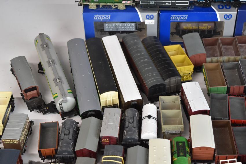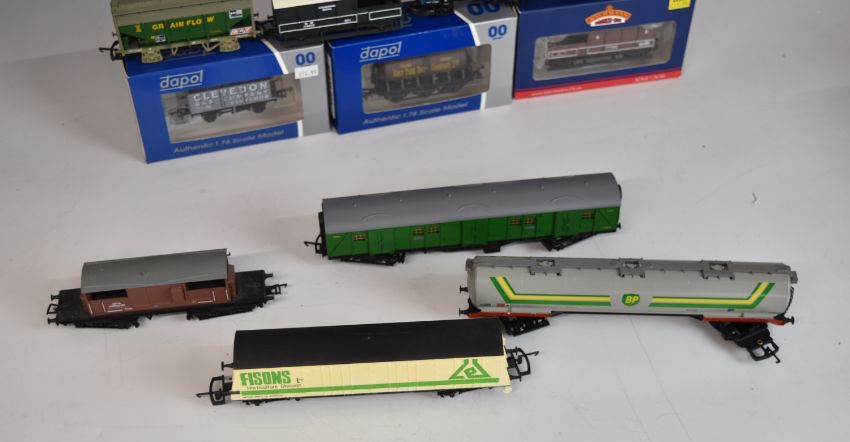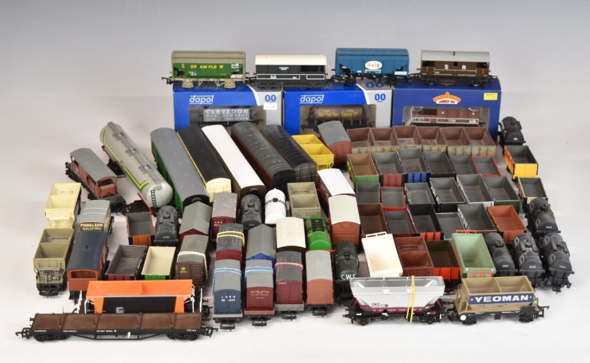 Eighty-two Hornby, Bachmann, Dapol and similar 00 gauge model railway wagons, vans and rolling stock, some in original boxes.