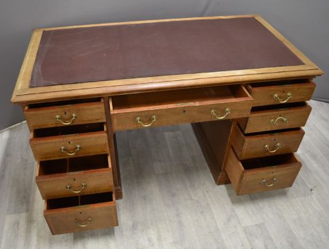 19thC mahogany leather inset twin pedestal desk, fitted nine drawers, W137 x D 68 x H76cm