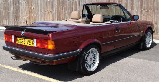 1990 BMW 320i convertible, registration number H329 VET, with V5c, MOT expires 22nd August 2022. Having the 6 cylinder 1990cc engine, Alpina wheels, steering wheel and factory rear wing, odometer currently records 99204 miles10%+VAT buyer's premium on this lot