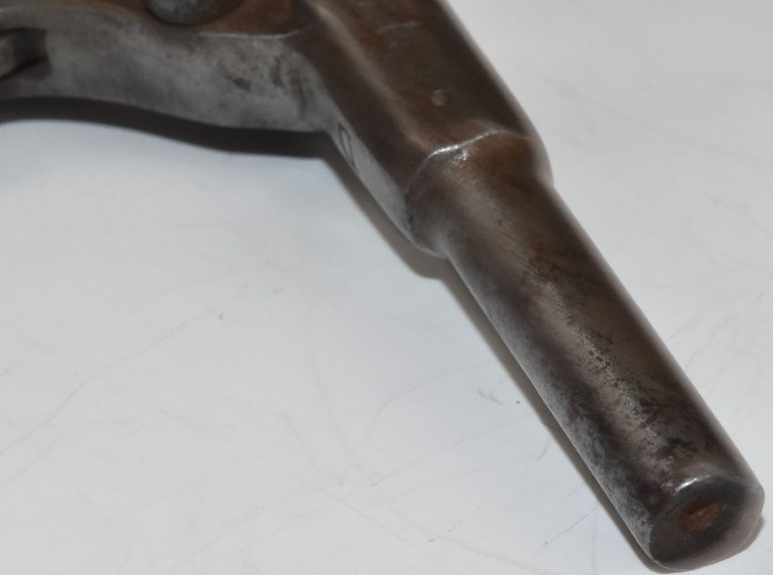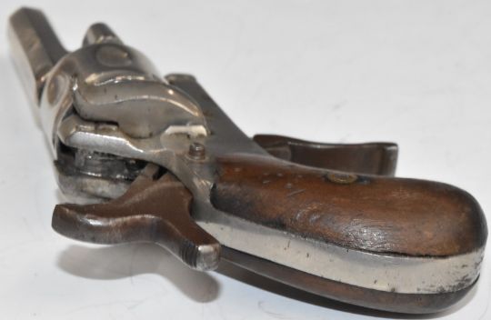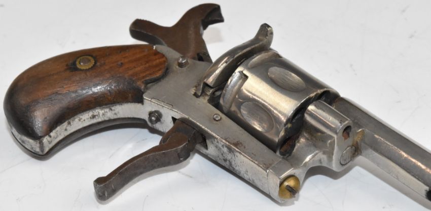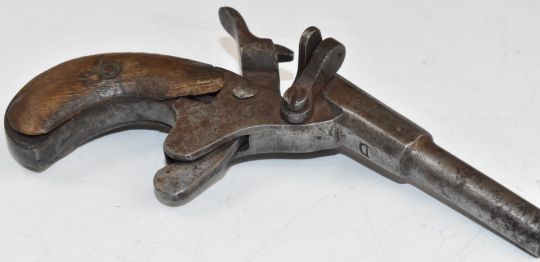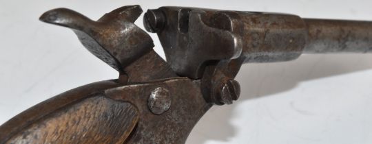 Two .22 blank firing pistols comprising a six-shot revolver with folding trigger and 1.75 inch octagonal barrel, overall length 12cm, and a muff pistol with 2.25 inch barrel, overall length 12cm.