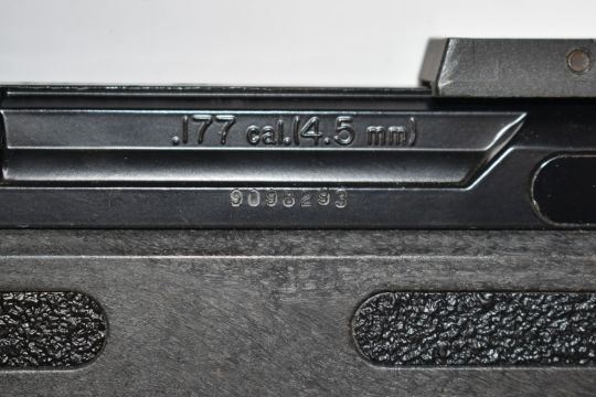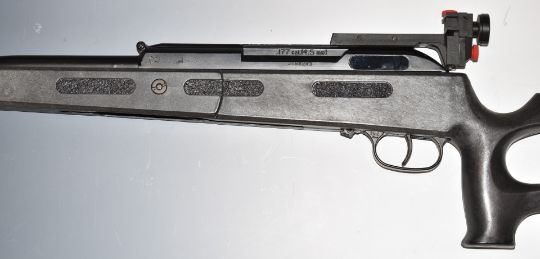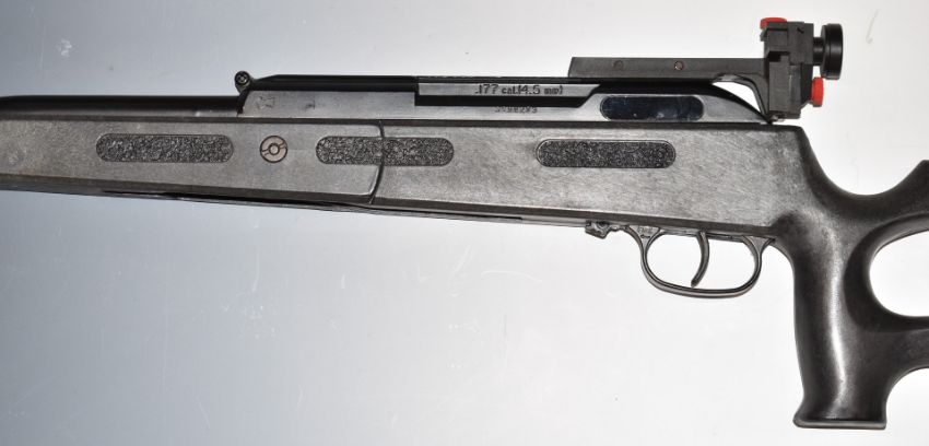 American Model 1790 .177 air rifle with composite skeleton stock and peep-hole target sights, serial number 9098293.