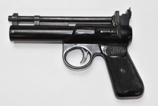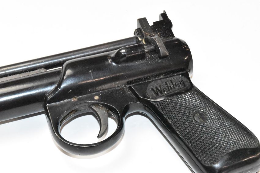Webley Junior Mk. II .177 air pistol with named and chequered grips and adjustable sights, serial number 362