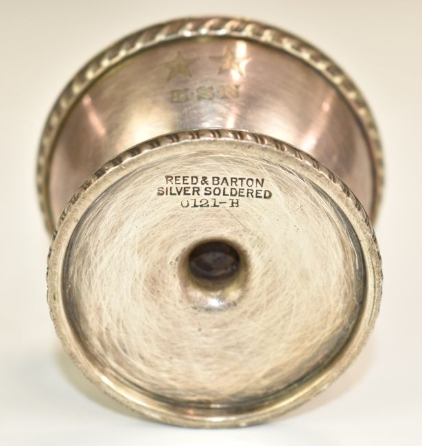 United States Navy silver soldered finger bowl by Reed and Barton, registration no 0121-H with engraved decoration and USN initials, diameter 7 x H4.5cm, by repute ex USS Arizona, Pearl Harbour