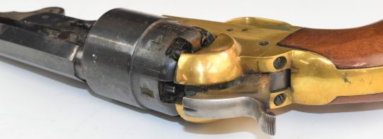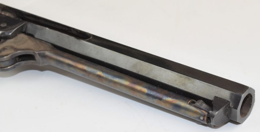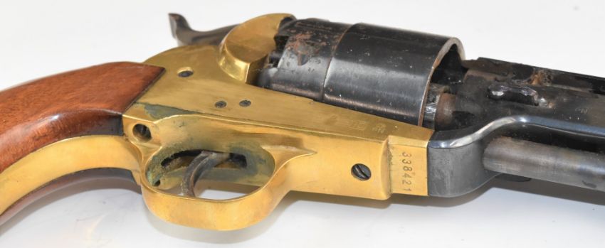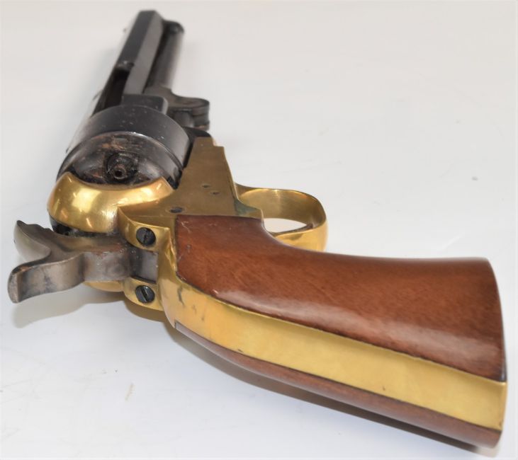 Deactivated Italian six shot single-action revolver with wooden grips, brass frame and 7.5 inch octagonal barrel, overall length 35.5cm, serial number 338421, with deactivation certificate dated 04/02/2019.