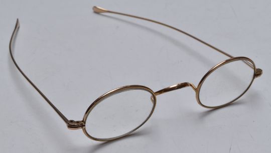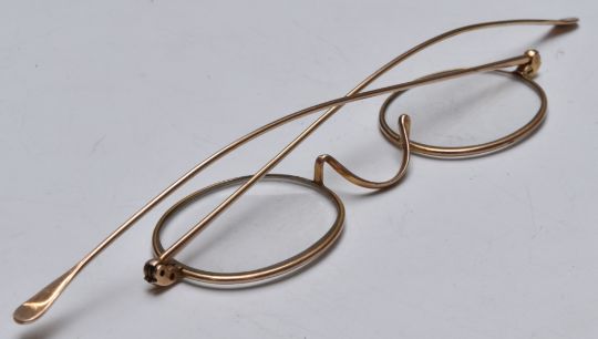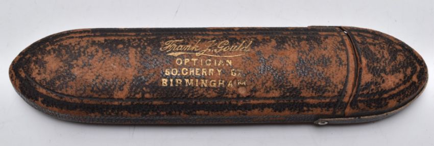 Cased pair of vintage gold plated spectacles, the case marked Frank Gould, Birmingham