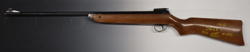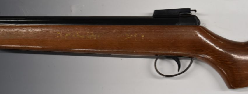 BSA Cadet Meteor Mk. IV .177 air rifle NG44482. The 'Cadet' model was produced in the 1970's to supply the Cadet forces and differences from the commercial model include the moving of the rear sight to accommodate a diopter sight and a modified trigger mechanism to prevent loss of parts on disassembly.