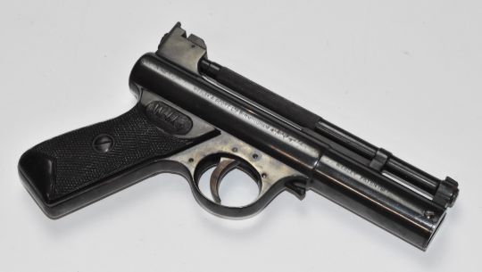 Webley Mark 1 .22 air pistol with named and chequered grips and adjustable sights and trigger, serial number 100.