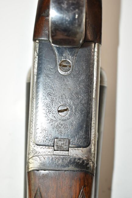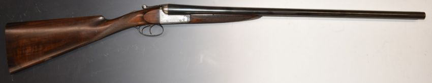 Edwinson Green of Cheltenham and Gloucester 12 bore side by side ejector shotgun with named and engraved locks, engraved underside, trigger guard, top plate and thumb lever, chequered grip and forend, vacant cartouche to the underside of the stock, double trigger and 28 inch barrels choked ½ and improved cylinder, overall length 116cm, length of pull 39.5cm, serial number 87408.  PLEASE NOTE THAT A VALID RELEVANT FIREARMS/SHOTGUN CERTIFICATE IS REQUIRED TO HANDLE/PURCHASE THIS ITEM.