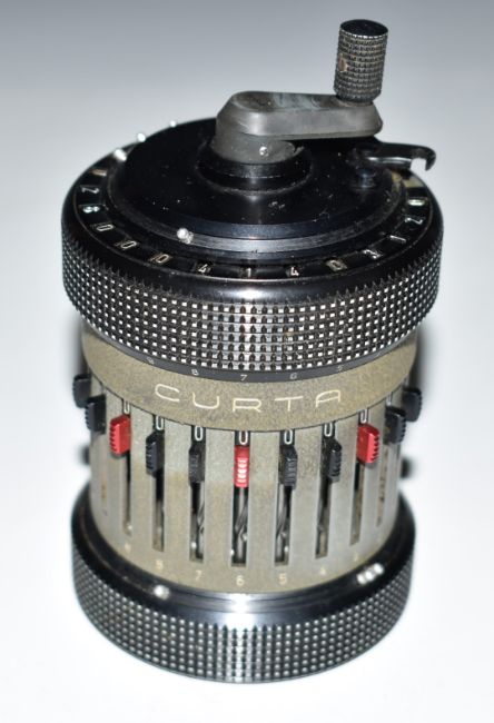 Curta Type II mechanical calculator c1966, serial number 538177, in original canister