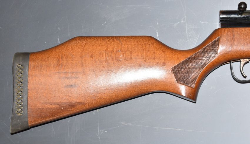 Sterling Armament HR81 .22 bolt-action air rifle with chequered semi-pistol grip and adjustable sights, serial number 3983.