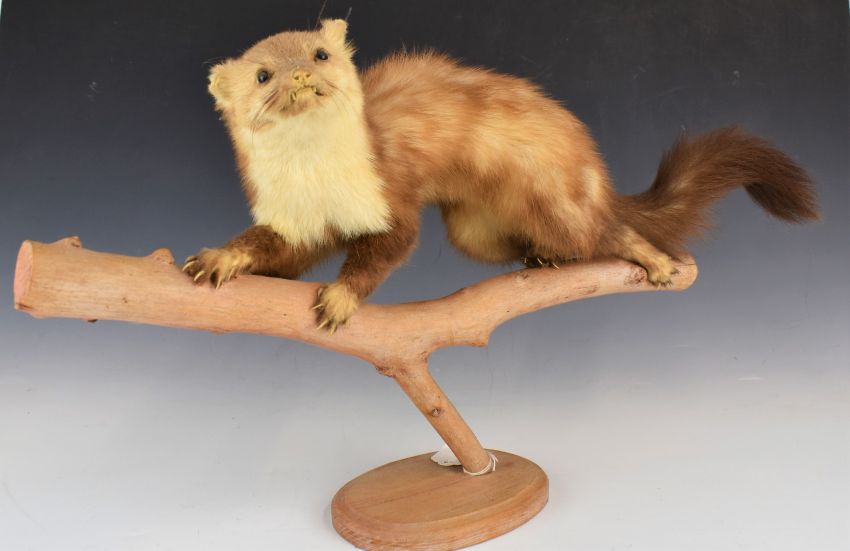 Four taxidermy stoats / weasels / Pine Marten, longest 57cm