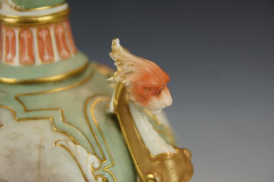 Royal Worcester covered pedestal vase with twin figural griffin handles and two large painted cartouches of pheasants in flight and on the ground, signed James Stinton, Worcester printed marks and shape no 1764 to base, H40.5cm
