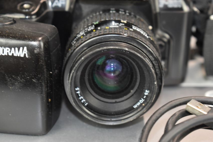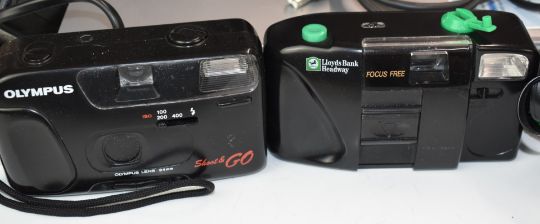 SLR and other cameras including two Pentax K1000 35mm both with 1:2 50mm lenses, Nikon F-60 with 35-70mm 1:3.3-4.5 lens and an Epson V100 photo scanner