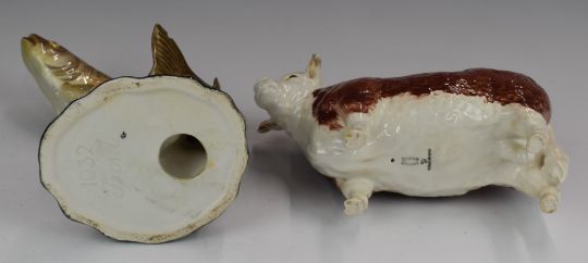 Beswick first version Hereford bull Champion of Champions and a Beswick trout model 1032, tallest 17cm
