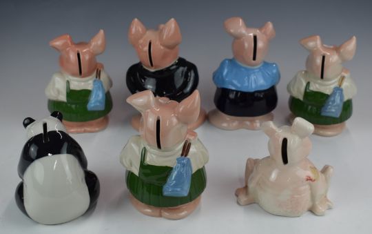 Wade Nat West pig money boxes and a WWF panda example, tallest 18cm
