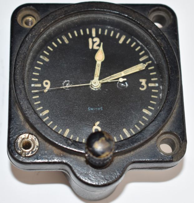 Smiths 5 ACA aircraft cockpit clock, serial number 677/50, with Fenns Farnborough label to top, width 6cm, possibly ex RAF