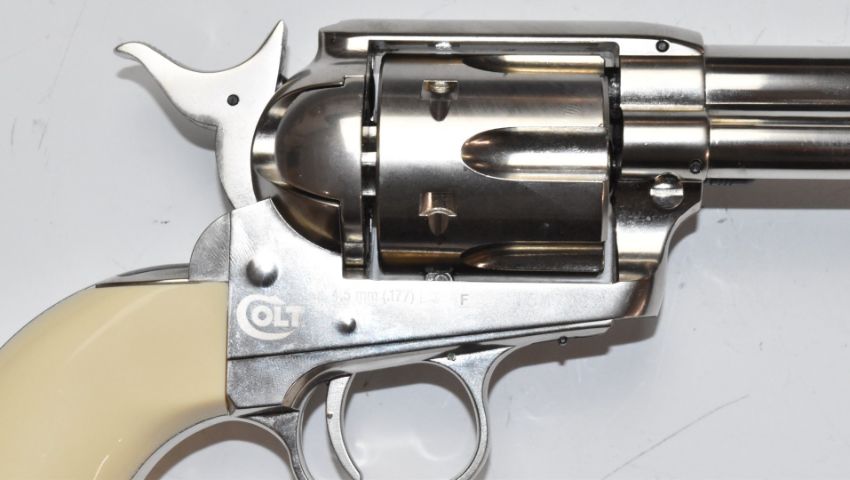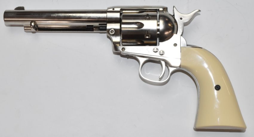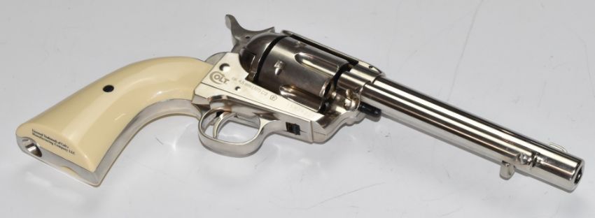 Colt Single Action Army .45 style .177 air revolver/ pistol with faux ivory grips, serial number 15M79221, in Case-Guard carry case.