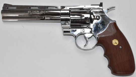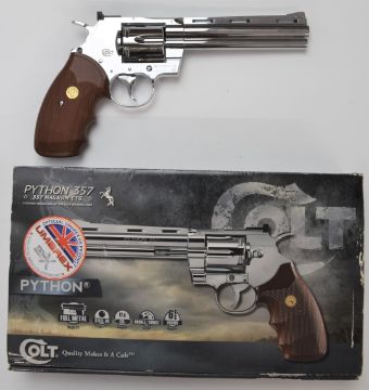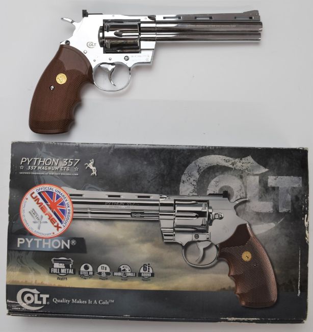 Umarex Colt Python .357 Magnum CTG .177 air pistol with faux wooden grips, serial number 14H00183, in original box.