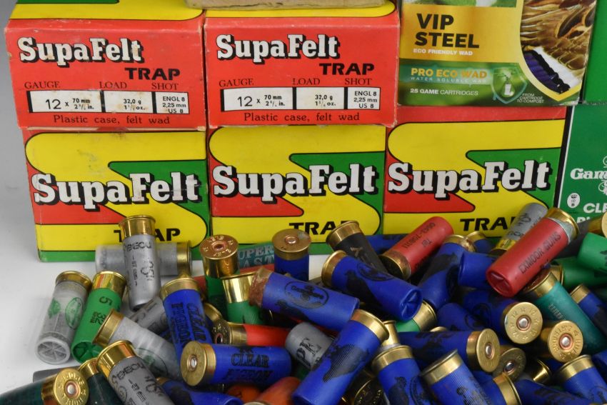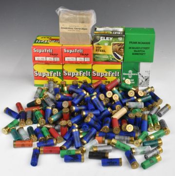 Over 300 12 bore shotgun cartridges including Eley-Kynoch Smokeless War-Time Issue, Frank Richards of Taunton, Eley VIP Steel, Lellier & Bellot SupaFelt Trap, Gamebore Clear Pigeon etc, some in original boxes.  PLEASE NOTE THAT A VALID RELEVANT FIREARMS/SHOTGUN CERTIFICATE IS REQUIRED TO HANDLE/PURCHASE THIS ITEM.We are not able to post this lot.
