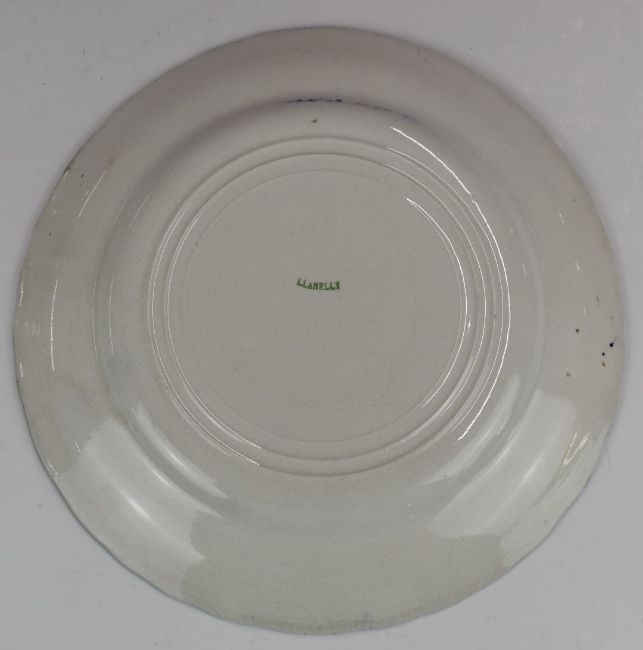 Llanelly Pottery plate with crimped rim and standing stork decoration, diameter 25cm