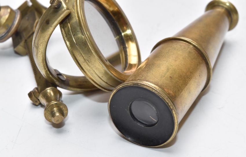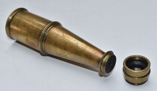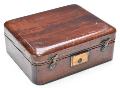 19thC Cary Gould-type pocket monocular microscope (unsigned), in velvet lined mahogany case with mounting socket and brass fittings, width of case 9.5cm