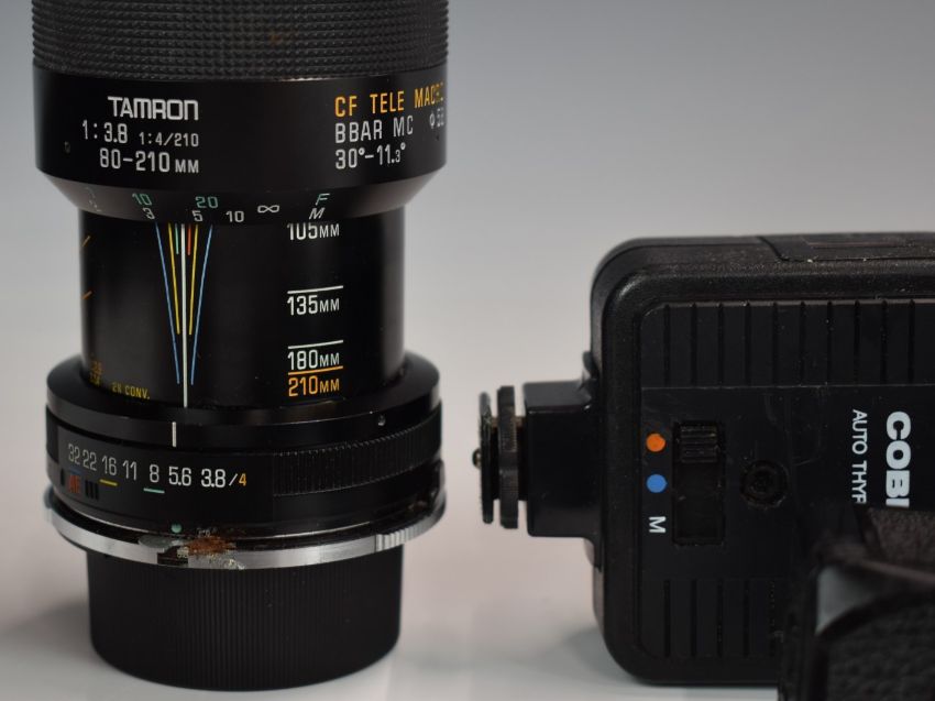Nikon EM 35mm SLR camera outfit, including camera, fitted with 50mm 1:1.8 lens, Tamron 80-210mm 1:3.8 and Paragon 400mm 1:6.3 lenses, MD-E motor drive and flash gun, all within an aluminium flight case
