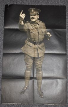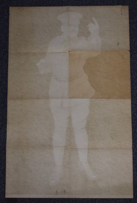 WW1 The Parliamentary Recruiting Committee, London military poster number 129 black and white photograph of recruiter signalling to potential volunteers, 100 x 62cm
