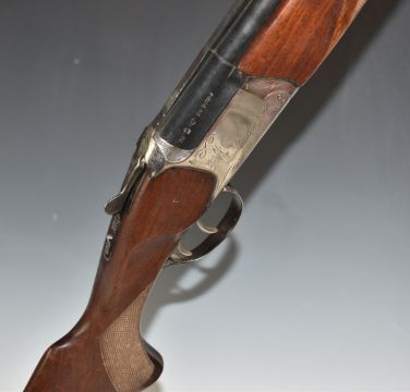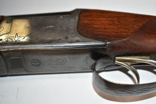Baikal NK-27E 12 bore over and under ejector shotgun with engraved scenes of birds to the locks, engraved top lever, trigger guard and underside, double trigger, chequered semi-pistol grip and forend and 28 inch barrels choked ¼ and ¾, overall length 112cm, length of pull 36cm, serial number H04375.  PLEASE NOTE THAT A VALID RELEVANT FIREARMS/SHOTGUN CERTIFICATE IS REQUIRED TO HANDLE/PURCHASE THIS ITEM.