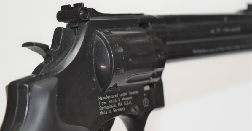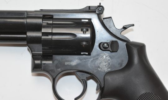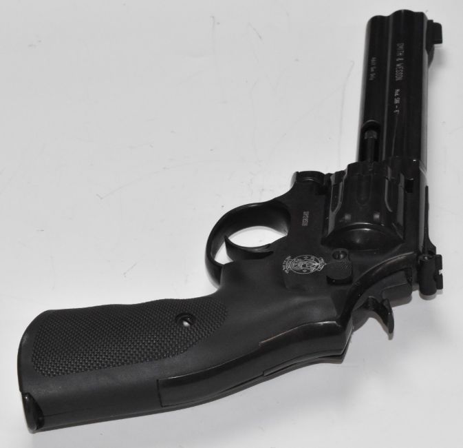 Umarex Smith & Wesson 586 .177 ten shot double-action CO2 air pistol/ revolver with textured grip and 6 inch barrel, overall length 33cm, serial number S9128509, in original fitted case.