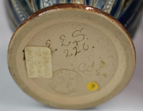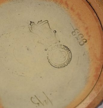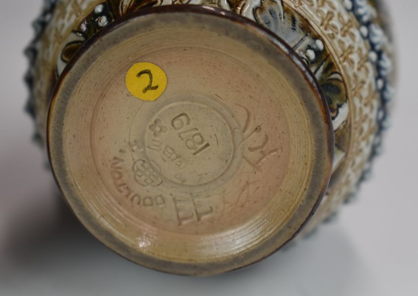 Royal Doulton art pottery ewer by Emily Stormer, small jug and a flared vase, possibly by Maude Bowden, tallest 18cm