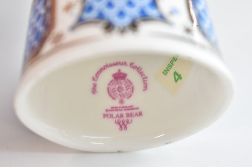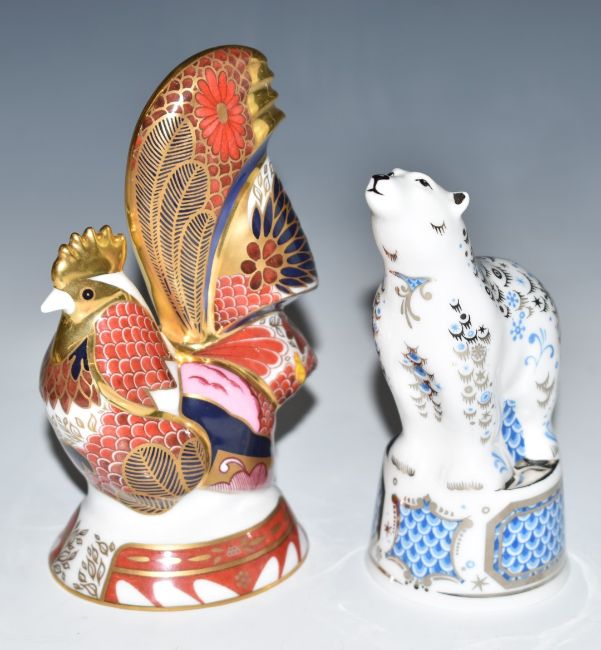 Seven Royal Worcester candle snuffers including Imari cockerel, smiling Buddha and Polar Bear, tallest 13cm