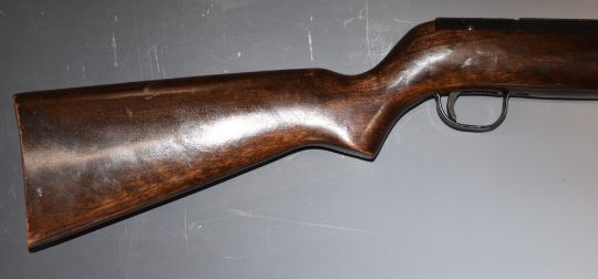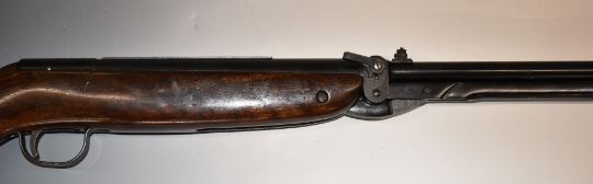 Webley Mark 3 .22 under-lever air rifle with named plaque inset to the stock, semi-pistol grip and adjustable sights, serial number 88894.