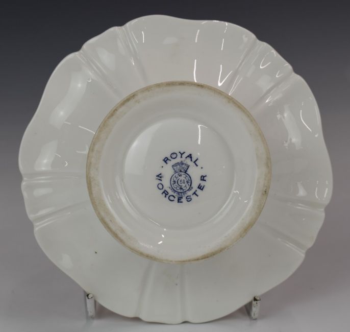 Royal Worcester painted fruit shaped pedestal dish, signed Ayrton, diameter 14.5 x H38cm
