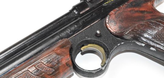 Crosman Model 1322 Medalist .22 target air pistol with shaped and chequered composite grip and adjustable sights, serial number 280221880.
