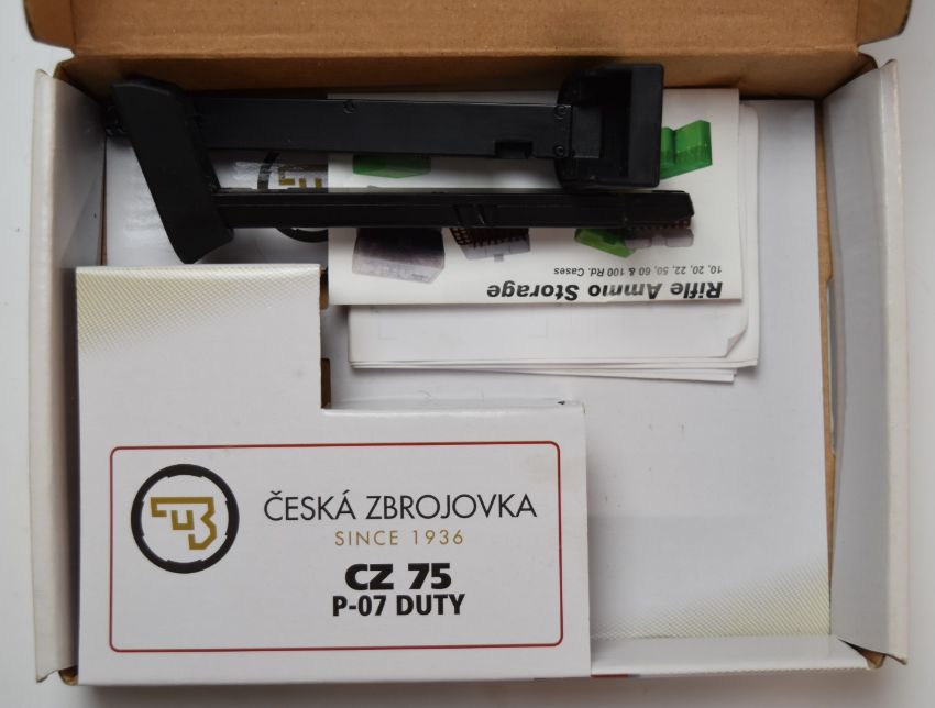ASG Ceska Zbojovka CZ 75 P-07 Duty .177 air pistol with two spare magazines, serial number A459139, in original box.