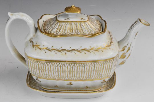19thC teapot and underplate, Coalbrookdale ewer and covered twin handled vase, and a set of five graduated Royal Crown Derby jugs decorated in the Posies pattern