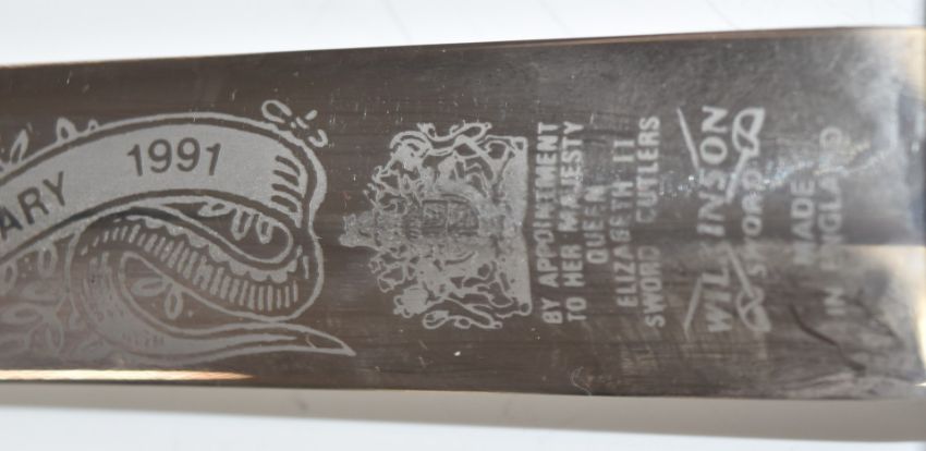 Wilkinson Sword 'Operation Desert Storm' commemorative Fairbairn Sykes fighting knife number 069, with 17cm blade etched 'Operation Desert Storm 17th January 1991', in fitted box. PLEASE NOTE ALL BLADED ITEMS ARE SUBJECT TO OVER 18 CHECK ON COLLECTION OR DELIVERY
