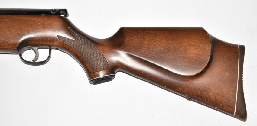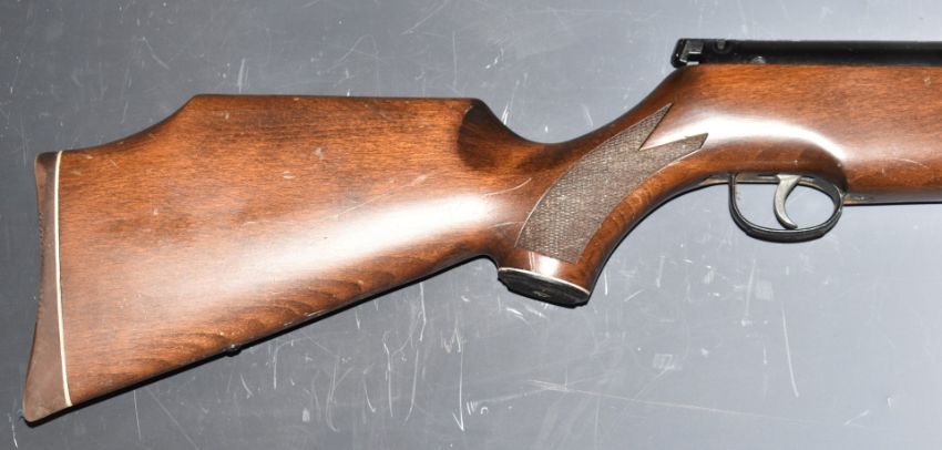 Webley Patriot .25 FAC air rifle with chequered semi-pistol grip, raised cheek piece to the stock, adjustable trigger and sound moderator, serial number 842941. PLEASE NOTE THAT A VALID RELEVANT FIREARMS/SHOTGUN CERTIFICATE IS REQUIRED TO HANDLE/PURCHASE THIS ITEM.