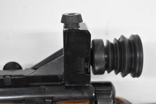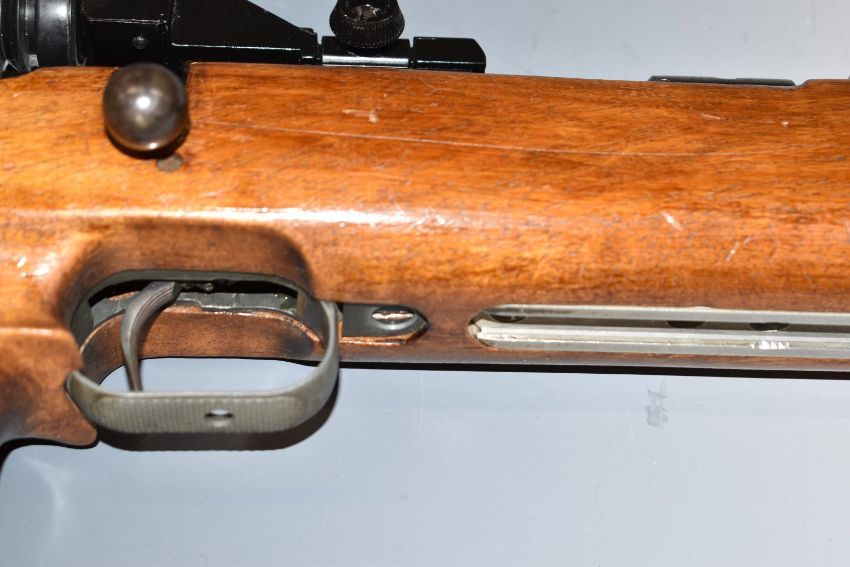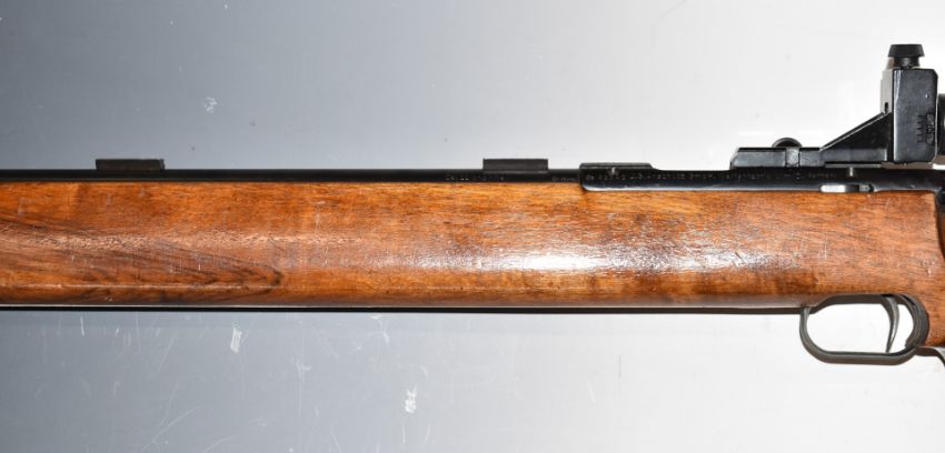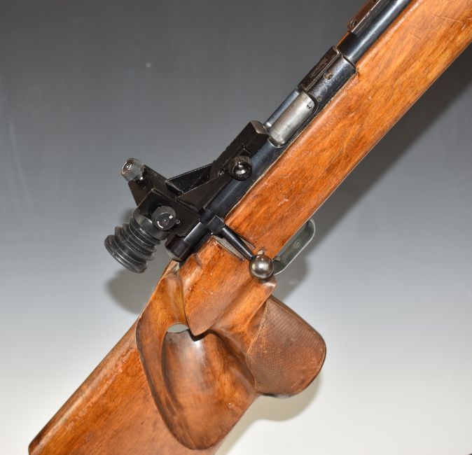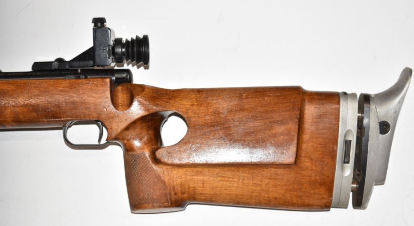 Anschutz model 1410 Match 54 .22 bolt-action target rifle with chequered thumb hole grip, raised cheek piece, adjustable butt plate and trigger, fully adjustable target sights and 27 inch barrel, overall length 116cm, serial number 49342. PLEASE NOTE THAT A VALID RELEVANT FIREARMS/SHOTGUN CERTIFICATE IS REQUIRED TO HANDLE/PURCHASE THIS ITEM.