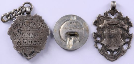 British Army WW1 medal trio comprising 1914-1915 Star, War Medal and Victory Medal named to 15258 Pte A Eden, Oxfordshire and Buckinghamshire Light Infantry, together with a Territorial Efficiency Medal for 180919 Pte N E Eden, Royal Army Service Corps, sports medals, Loyal Service badge etc