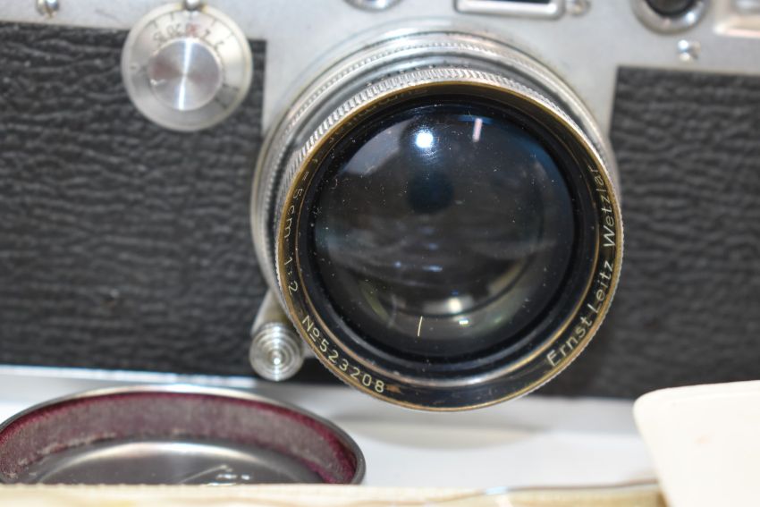 Leica IIIf 35mm rangefinder camera outfit, serial number 609355 (circa 1951/2), with Leitz Summitar 5cm 1:2, Summaron 3.5cm 1:3.5 and Elmar 9cm 1:4 lenses, together with various accessories including Leica leather case, manuals, BPM Prismeter No 1 41.5mm close up attachment etc