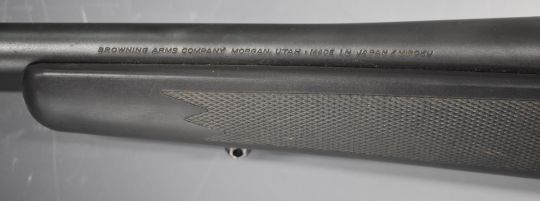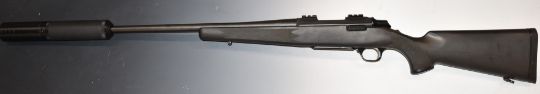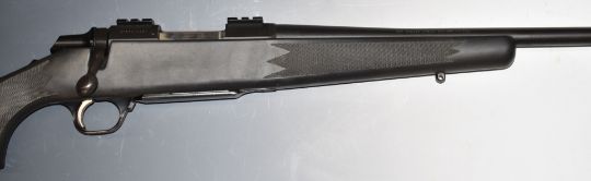 Browning .243 Win bolt-action rifle with hair trigger, chequered semi-pistol grip and forend, composite stock, sling mounts, sound moderator and 28 inch barrel, overall length 1020cm, serial number 61379MR351. PLEASE NOTE THAT A VALID RELEVANT FIREARMS/SHOTGUN CERTIFICATE IS REQUIRED TO HANDLE/PURCHASE THIS ITEM.