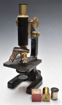 Two cased Hearson London microscopes, height of taller case 38cm